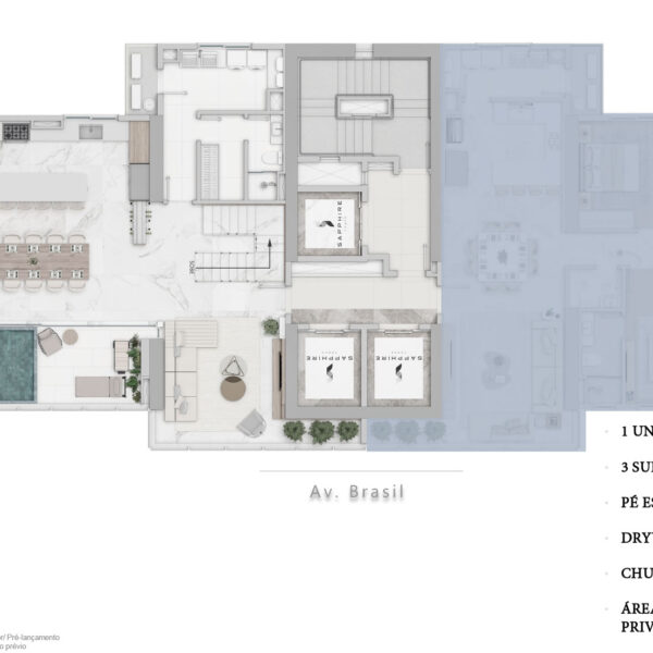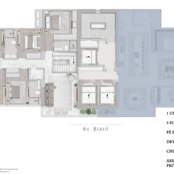 Área privativa de 298,21 m² 5 dormitórios sendo 3 suítes + 2 demi-suítes